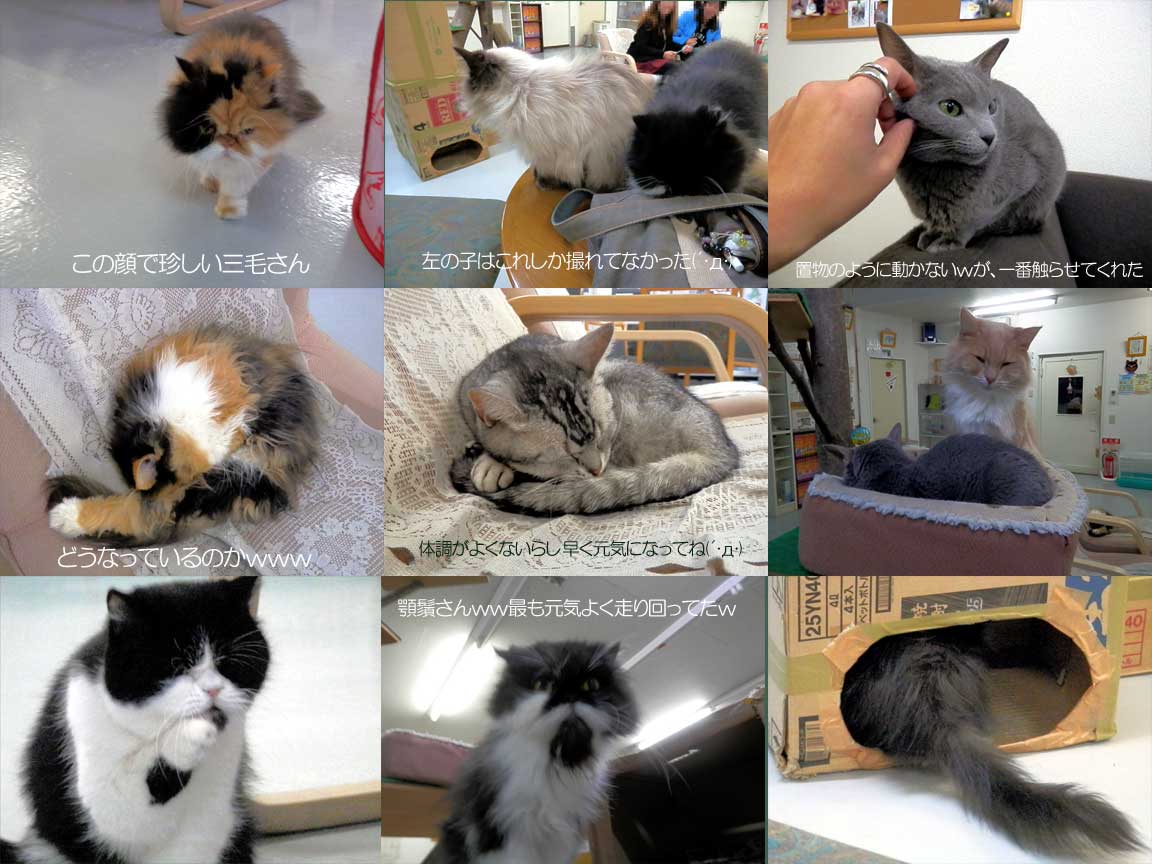 先日、誕生日だったので命の洗濯に人生初の猫カフェ行ってきましたw 休日だったせいもあってか、思ったより混んでて5台ほどある駐車場がほど満車でした。 客層は若い女の子のグループとかカップルがおおかったので、やや気後れw なんつーかもっとかまって欲しかったけどw 猫たちは結構クールでほったらかしにされてちょっと泣いたw やw泣いたは嘘だけどw するにまかせてその仕草などを楽しむという感じでしたな。 お触りおkだけど、触ると嫌そうにする子が多かったのもちょっと残念。 ひざに乗ってきたので「おっ」と思ったら テーブルに乗るための踏み台にされただけだったりw この辺でもちょっと泣いたw かまってもらえなくて退屈したので、漫画1冊読みながらときおり写真撮って2時間弱居てきました。 カフェといいながら、誰もなにも飲んでなかったし、店のオヤジも勧める風でもなく 結局なにも頼まないでしまいましたがそれってどうなの… 1ドリンク30分で500円・フリーで1000円という料金なんだけどねえ。 や、最も不満だったのはモフモフ不足なところでしたがw これはしょうがないかなwヨソサマの猫だしw 最もやんちゃな子がケージに飛び乗る瞬間を連写機能で捉えましたw ひっさびさに更新したら、サムネから別窓立てられなってるっぽい? javaスクリプト使えなくなったのかなー(´・ω・`) とにかく長かった!